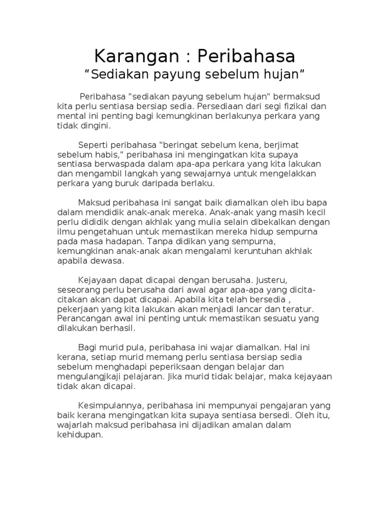 Contoh Karangan Dengan Peribahasa Pdf